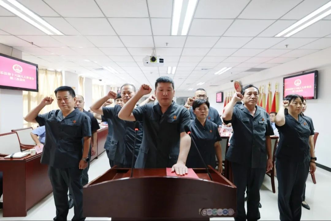 杨雷振等新任命同志一起面向国旗、抚按宪法,进行了庄严宣誓。宣誓后,新任命同志一致表示,在今后的审判工作中,将始终牢记法官的职责和使命,公正司法、廉洁办案,让人民群众切实感受到公平正义就在身边,为南乐高质量发展作出新的更大贡献。